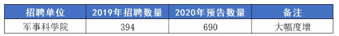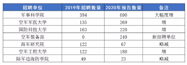 此外,上圖的空軍裝備部是2020年首次發布文職人員招考預告信息,從而也說明了2020年軍隊文職招考會有一些新的招考單位加入進來。